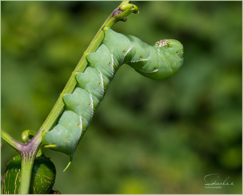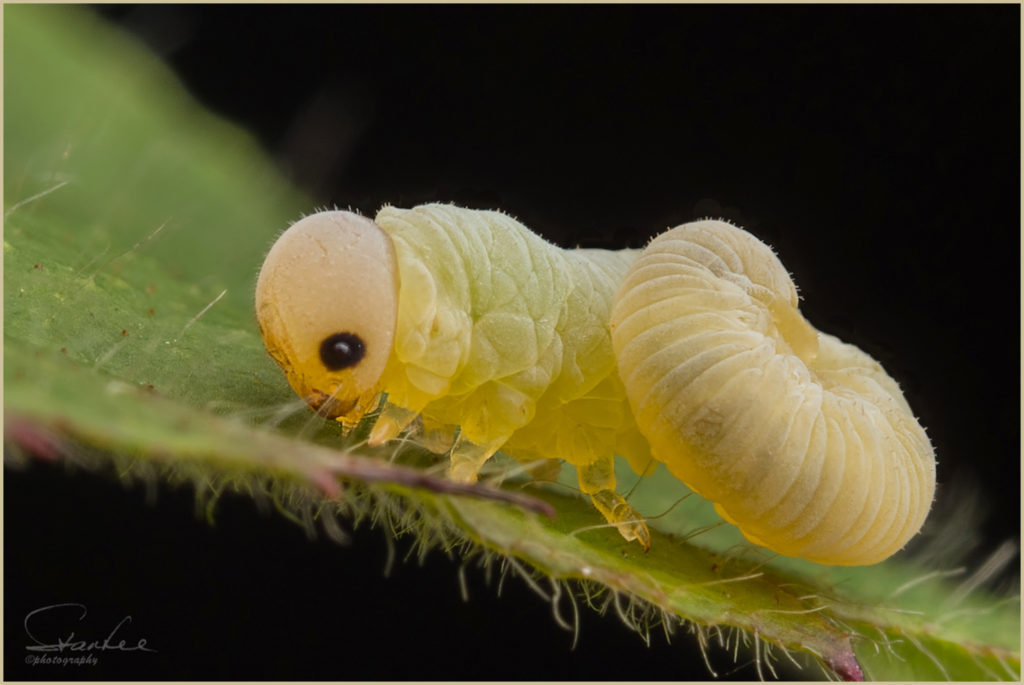 This tiny Sawfly Larva is so cute, it's head looks like a little monk. ...